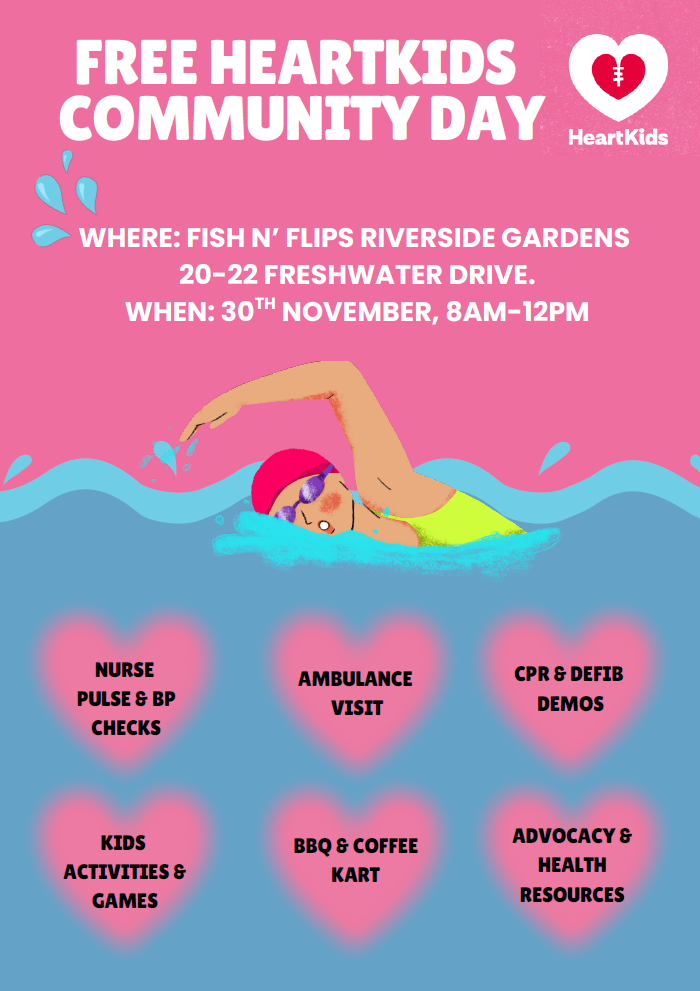 This month, she is taking on a 50km swimming challenge to raise funds and awareness for HeartKids and hosting a community day.