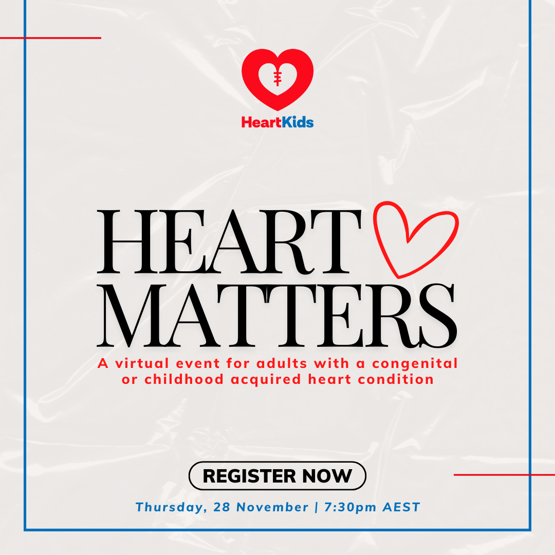 Join us for Heart Matters, an exclusive virtual event designed for adults living with a congenital or childhood-acquired heart condition. Building on the insights shared during our first webinar on empowering your health journey, this event will dive even deeper into your health, well-being, and the unique challenges you face.
