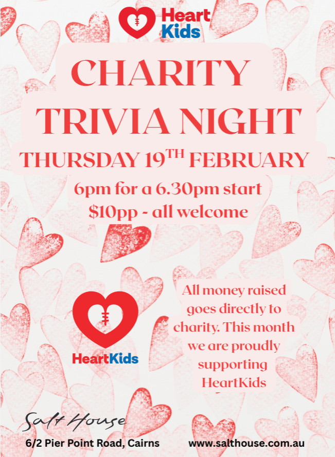 HeartKids invites you to join us at Salt House Cairns for a fun and feel-good night of trivia in support of children and families impacted by congenital heart disease.