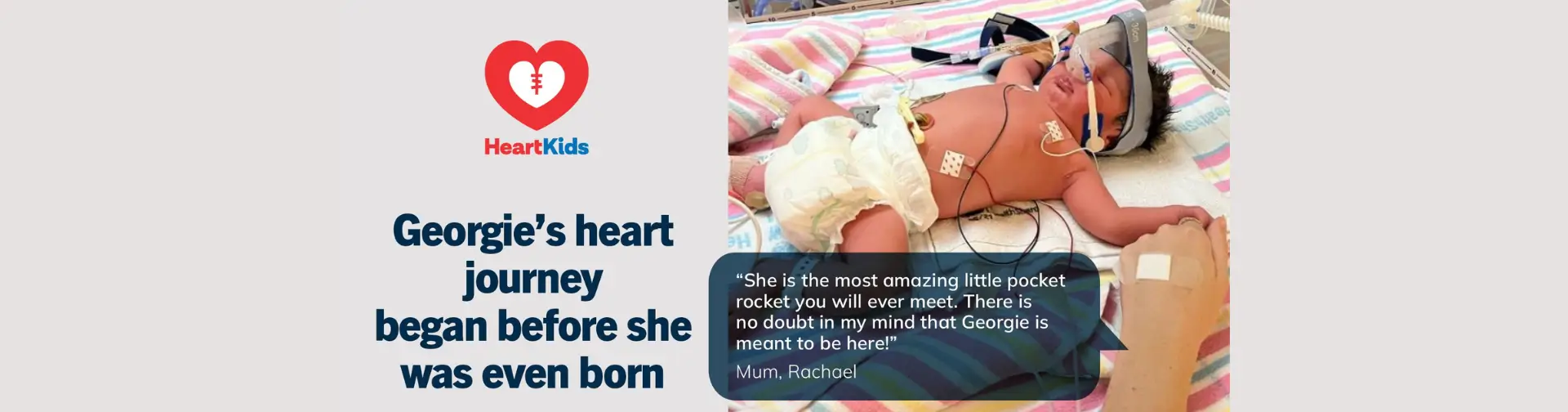 HeartKids supports families impacted by CoHD like Georgie’s by providing emotional and practical support during times of hardship. Rachael learned about HeartKids while in hospital and was grateful for the invaluable support given to families like hers.