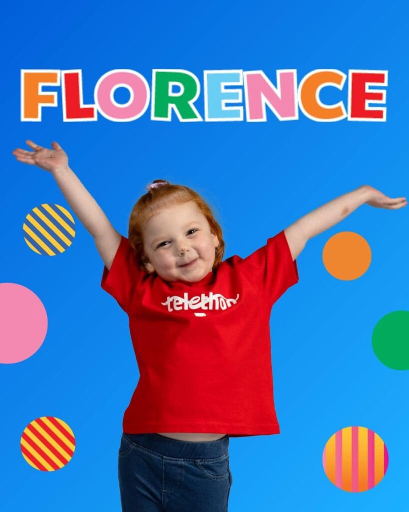 Despite her health challenges, Florence is full of energy, often entertaining her family with creative performances at home. Her mother, Roslyn, proudly shares how Florence has flourished after her most recent surgery, making her the perfect choice to inspire others through the Telethon.