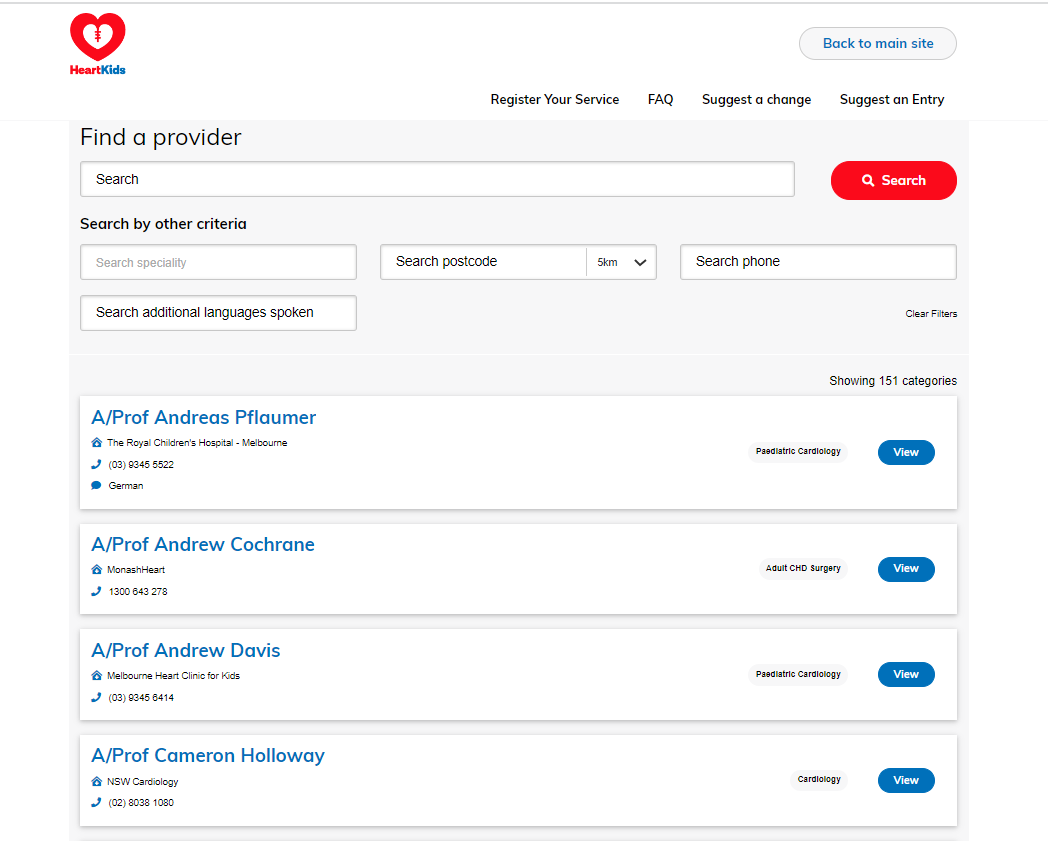 As part of the Commonwealth funded work on the National Strategic Action Plan for Childhood Heart Disease (CHD), HeartKids has developed a national, publicly accessible CHD Directory to improve our community’s access to support services, clinicians and other health professionals with specific CHD skills.