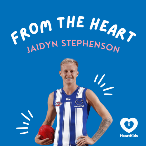 In this episode of “From the Heart,” join our host, Rachel, for a special conversation with Jaidyn Stephenson, North Melbourne AFL Player, and dedicated HeartKids Ambassador. Rachel and Jaidyn discuss navigating his heart condition and achieving success in his AFL career. Tune in as Jaidyn shares insights into the special bond he has forged with HeartKids.